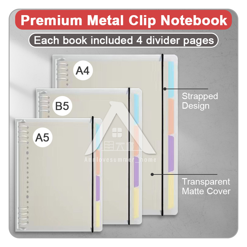【𝗔𝗦𝗛】FULL SET❗️Muji Metal A5/A4/B5 Transparent Cover Straps & Divider Page Student Notebook Journal Inner Page Refill笔记本